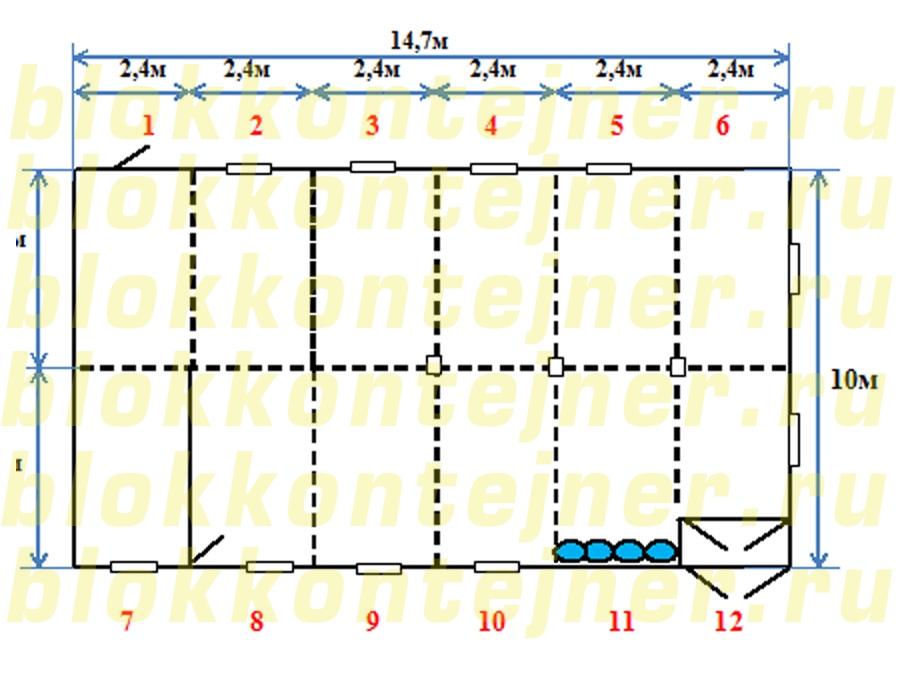 состоит из 12 единиц БК размер 5,0*2,45*2,5м: